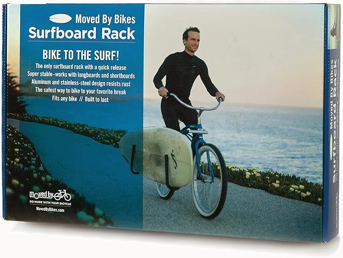 MBB Longboard Bicycle Surfboard Racks, by Moved By Bikes, Compatible with Shortboards, Longboards, and SUP Paddleboards, Quick Release Bars