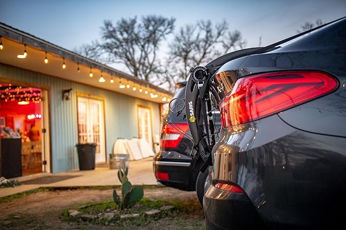 Saris Bones Car Trunk Bicycle Rack Carrier, Mounts 2 Bikes, Black - Durable, Rust-Free, Anti-Sway Straps, Fits Most Vehicles, Made in USA, Arc-Based Design, 100% Recyclable Materials