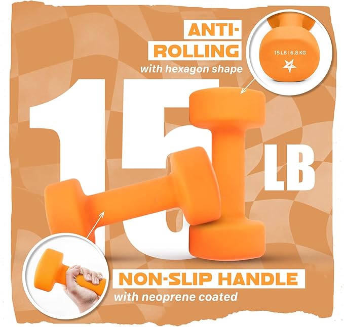 Yes4All Neoprene Coated Dumbbell Hand Weight Sets of 2 - Multiple Weight Options with 15 Colors, Anti-roll, Anti-Slip, Hexagon Shape