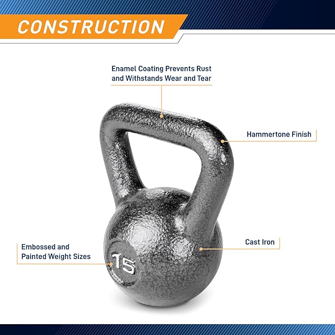- Kettlebell Sizes: This kettlebell is available in 10, 15, 20, 25, 35, 45, and 55 pounds to allow you to customize your training according to your needs. Each piece of equipment is cast to a precise weight for safe and efficient weightlifting exercises.