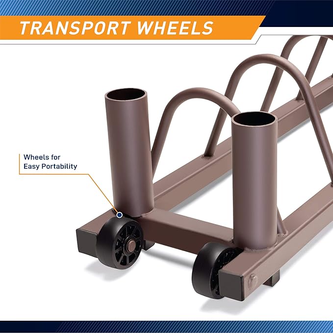 - EASY TRANSPORT –This rack’s built-in wheels allow for hassle-free transport around your home or the gym, eliminating the need for tedious lifting.