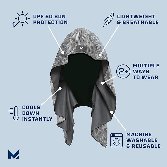 MISSION Cooling Hoodie Towel- Hood Towel, Evaporative Cool Technology, Cools Instantly When Wet, UPF 50 Sun Protection, Contours Your Head to Stay in Place, Great for Sports, Fitness, Gym