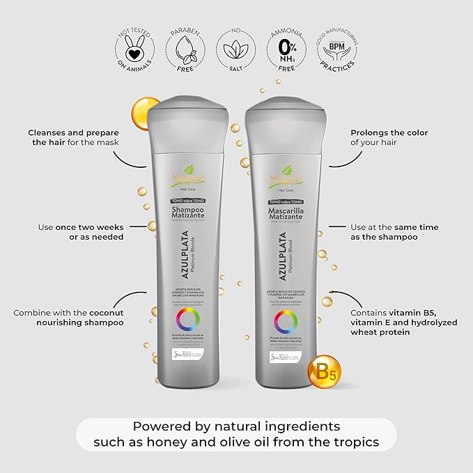 naissant Silver Ash Blonde Hair Blue Toning Mask | Eliminates Brassiness | Neutralizes Yellow & Orange Tones | Paraben, Ammonia & Sulfate Free | Pro-Vitamin B5, Olive Oil & Honey (Azul Plata) 10.1 Fl