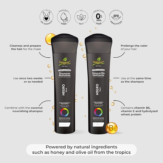 Naissant Cool Black Hair Toning Mask | Eliminates Brassiness | Neutralizes Yellow & Orange Tones | Paraben, Ammonia & Sulfate Free | Pro-Vitamin B5, Olive Oil & Honey (Negro) 10.1 Fl
