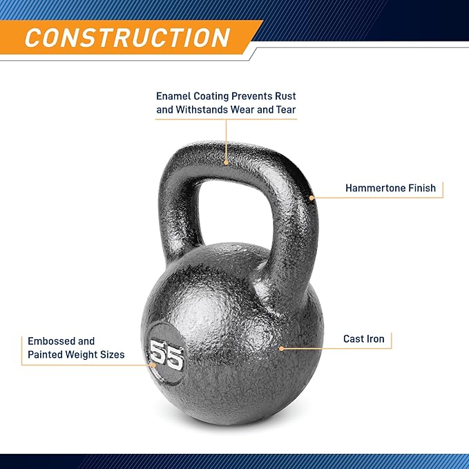 - Kettlebell Sizes: This kettlebell is available in 10, 15, 20, 25, 35, 45, and 55 pounds to allow you to customize your training according to your needs. Each piece of equipment is cast to a precise weight for safe and efficient weightlifting exercises.