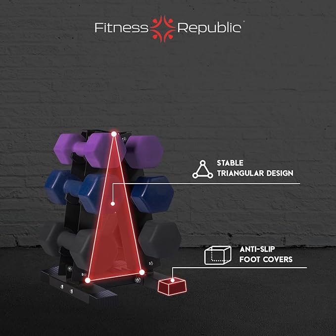 - 3-Tier Neoprene Dumbbells Racks are an ideal choice for a home gym. It is crafted for space saving element, which will create an amazing outlook and provide you with your fitness needs