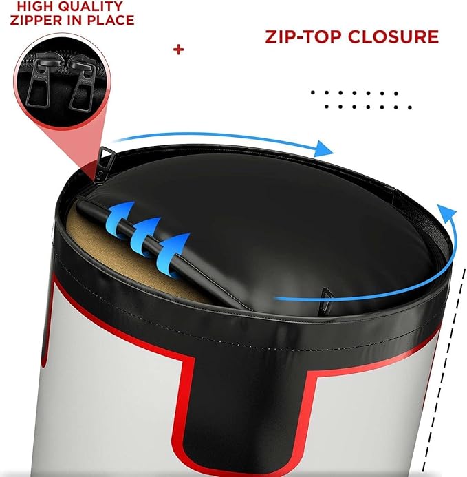 - ZIP-CLOSURE TOP – With zipper closure on top, the bag can easily be filled with shredded textile filling as per the needs of the training regimen.