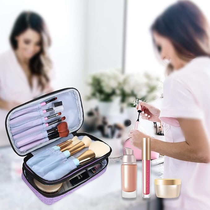 Teamoy Travel Makeup Brush Bag(up to 8.5"), Professional Cosmetic Bags Organizer Case with Handle Strap for Makeup Brushes and Beauty Supplies-Small, Purple (No Accessories Included)