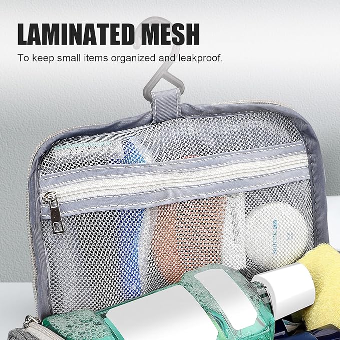 - WIDE OPEN DESIGN WITH ORGANIZED COMPARTMENTS: Compact yet spacious, this travel bag provides adequate room for all your essentials. The bag as a whole measures 9.25 L x 4.72 W x 4.72 H in Inches / 23.5 L x 12 W x 12 H in centimeters, with a volume of 3.3 L. It features a main compartment that holds larger items such as shampoo bottles or shaving cream, a zippered mesh pouch that keeps your smaller toiletries and cosmetics in place, and a front zipper pocket that provides extra storage with easy