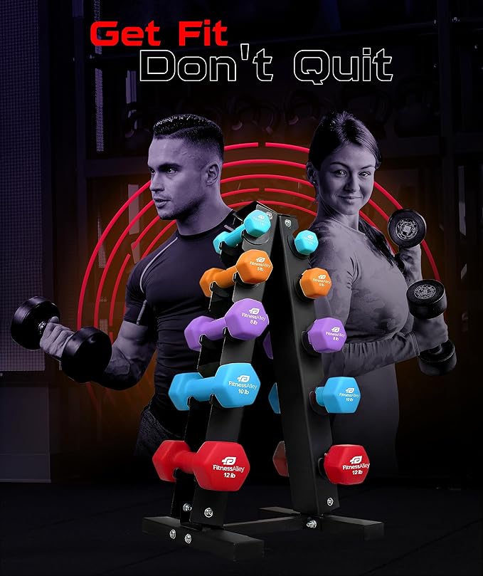 - Neoprene Dumbbells 5 tier Racks is considered the best option for house gyms setup as it is portable and doesn’t require much space. The display of dumbbells racks adds significant outlook as well