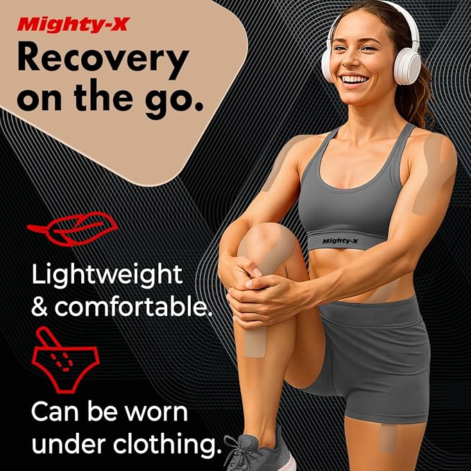 - PAIN RELIEF AND MUSCLE SUPPORT – Professional athletes and active people use Mighty-X kinesiology tape roll to ease muscle pain and swelling after intensive workouts. When wearing the k tape roll, you may forget about the injury and keep going to meet your goals.