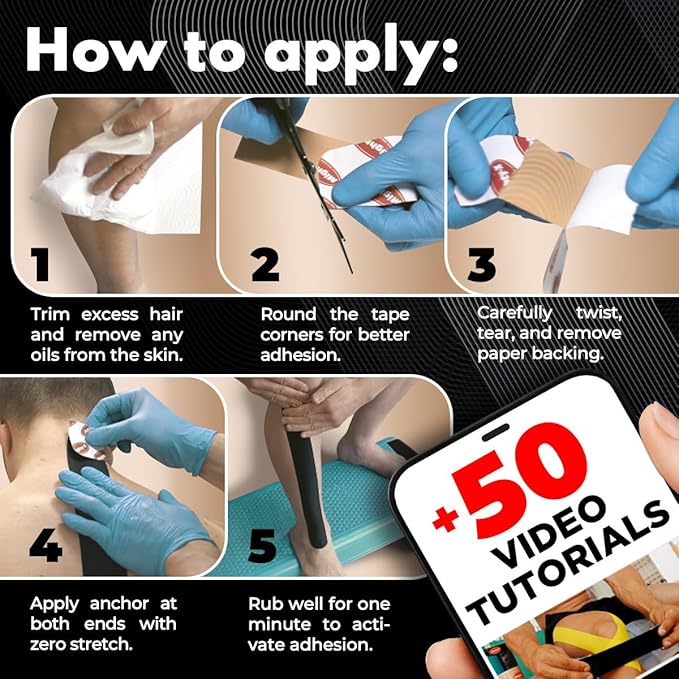 - 50 FREE VIDEOS INCLUDED – We provide 50 FREE, step-by-step instructional videos of physical therapy tape applications for the most common muscle and joint injuries to ensure you find the correct one for the fastest recovery.