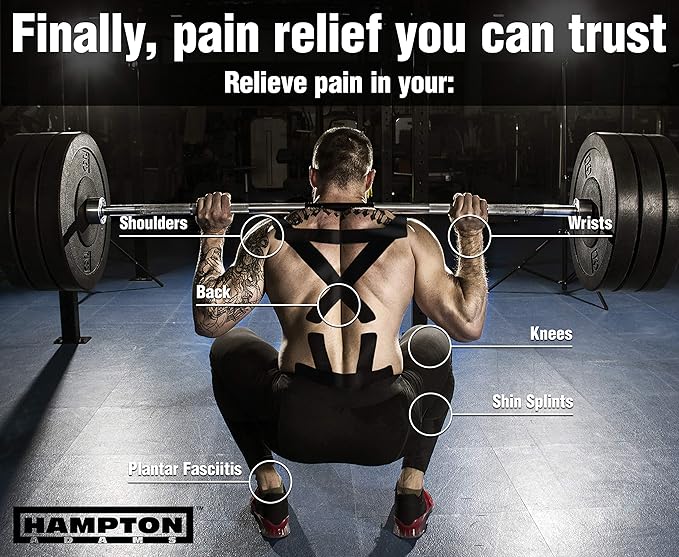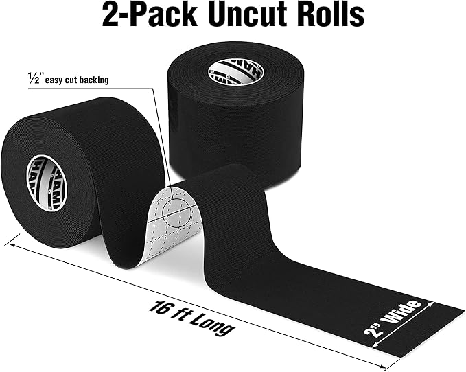 Hampton Adams | As Seen on Shark Tank | Elastic Kinesiology Tape (2-Pack) | Uncut Athletic Tape Supports & Protects Muscles Knees Shoulders & Plantar Fasciitis | Waterproof Hypoallergenic (Black)