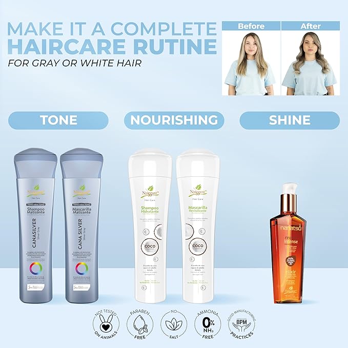 - Versatile Color Range: Choose your color mask from an array of stunning shades, including Black, Blond Pearl, Fiery Red, Platinum Blonde, and Ashen Gray Blonde. Naissant's color mask is perfect for women seeking a tailored mask for their color-treated or collared hair.