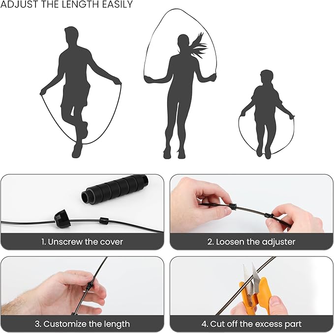 - SMOOTH & EFFORTLESS SPINS. Our adjustable jump rope's unique ball-bearing system makes each jump smoother. This skipping rope is easy to untangle and flatten out after every use, making this perfect for both beginners and professionals.