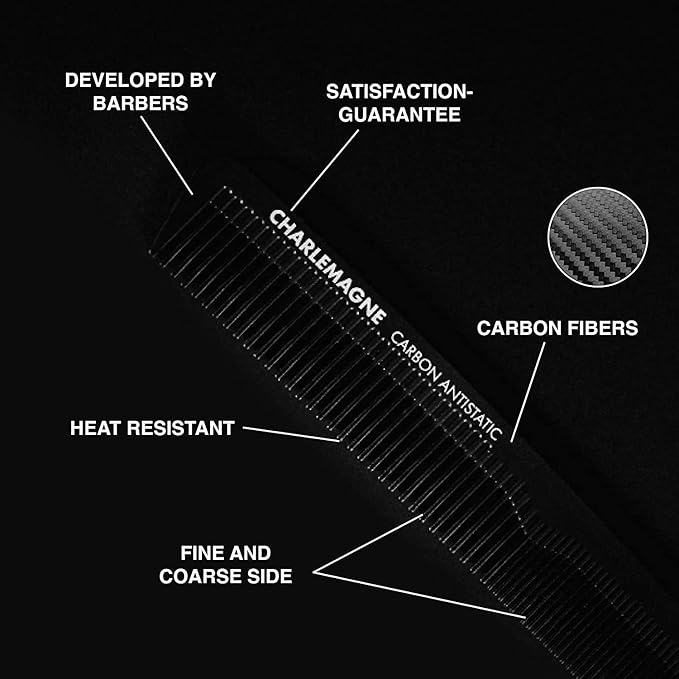- Anti-Static Durability: Charlemagne anti-static hairdressing comb is built from tough carbon fiber, making this mens combs for hair unbreakable. No more broken teeth or static hair issues. Whether your hair is short or long, this styling comb helps you achieve your perfect look