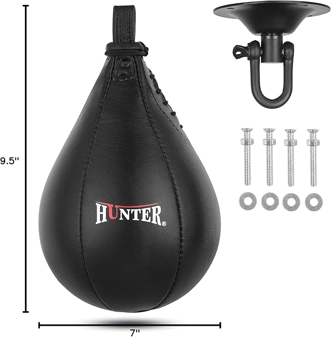 Hunter Leather Speed Bag with Hanging Swivel - Boxing Training Bag for Speed & Accuracy