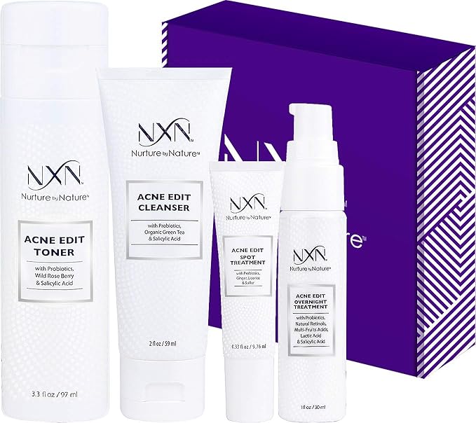 NxN Acne Treatment Kit 4-Step Clear Skin System with Salicylic Acid, Probiotics, Sulfer & Natural Retinols, Control Blemishes & Breakouts, Face Care Solution Set for All Skin Types Including Sensitive