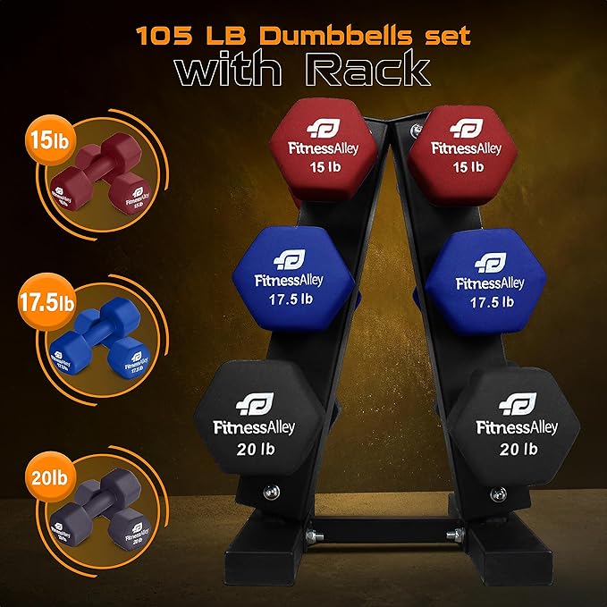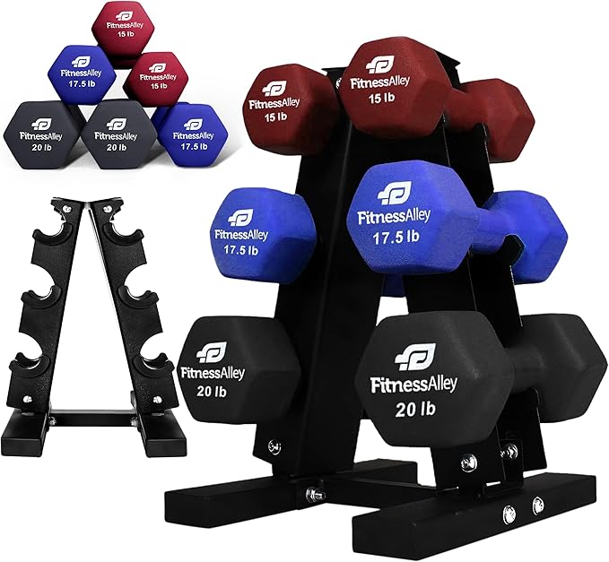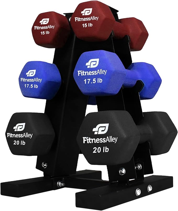 - Soft Neoprene coating grip enables for an easy grip. Having a capacity of 120lb, neoprene dumbbells racks provide rubber clips on each holder over which any weight from 2lb to 20lb can be stored with ease