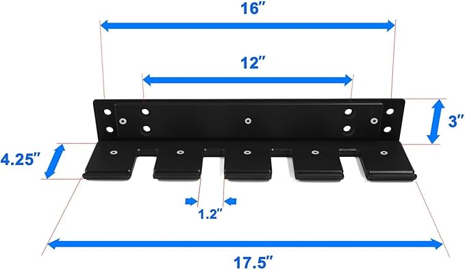 - 17. 52 x 4. 25 x 3 inch wall mounted barbell holder top: specially designed with a screw hole-to-hole spacing 2, 12 & 2 inches, Yes4All bar hanger is compatible with 12, 14 & 16-Inch wood studs