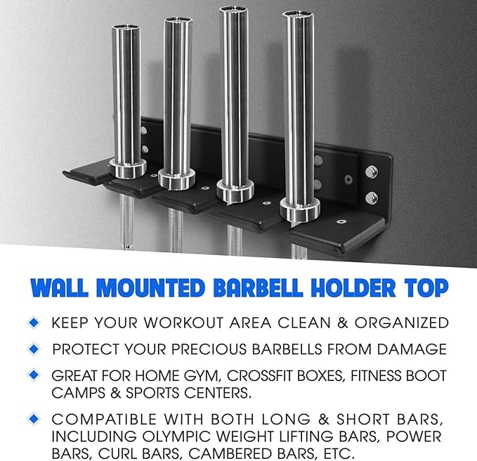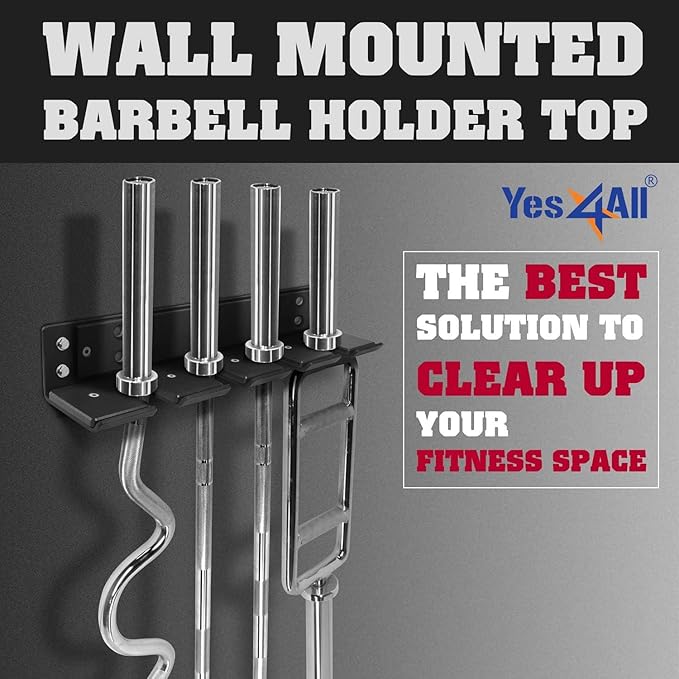 - Quick and easy installation: no more complicated assembly! Yes4All wall mounted barbell holder top comes with four screws to help you securely attach the bar hanger on wood in a breeze