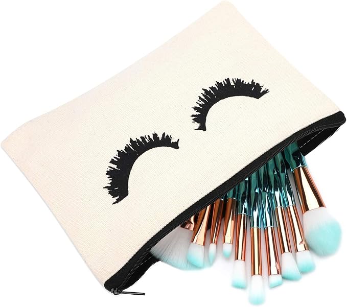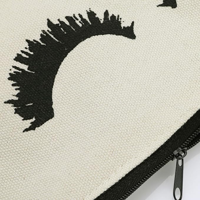- Cute design - canvas cosmetic bag, printed with eyelash pattern, looks cute and stylish, a good makeup accessory for women, with zipper closure on the top, smooth and easy for you to open and close.