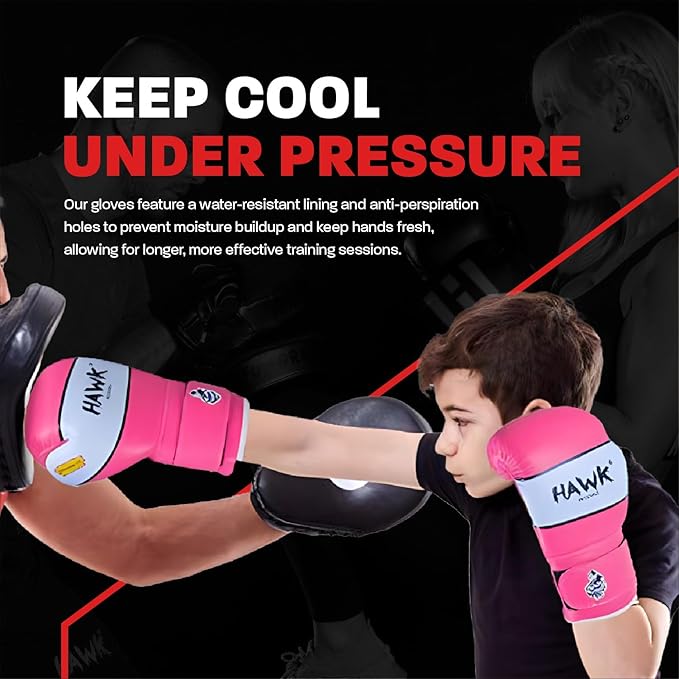 - ✅ANTI-PERSPIRATION HOLES: These hawk kids boxing training gloves have a breathable pinhole palm that offers increased hygiene efficiency. Top quality bag gloves for kids to reduce offensive odors, moisture through children hands.