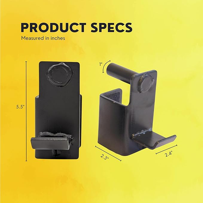- Purpose - Add the J Hooks as an accessory for the 2.35” x 2.35” upright poles on the Pro Series Power Cage. Our J Hooks are designed to hold Olympic style barbells in between sets or workouts. Easy to attach and detach.