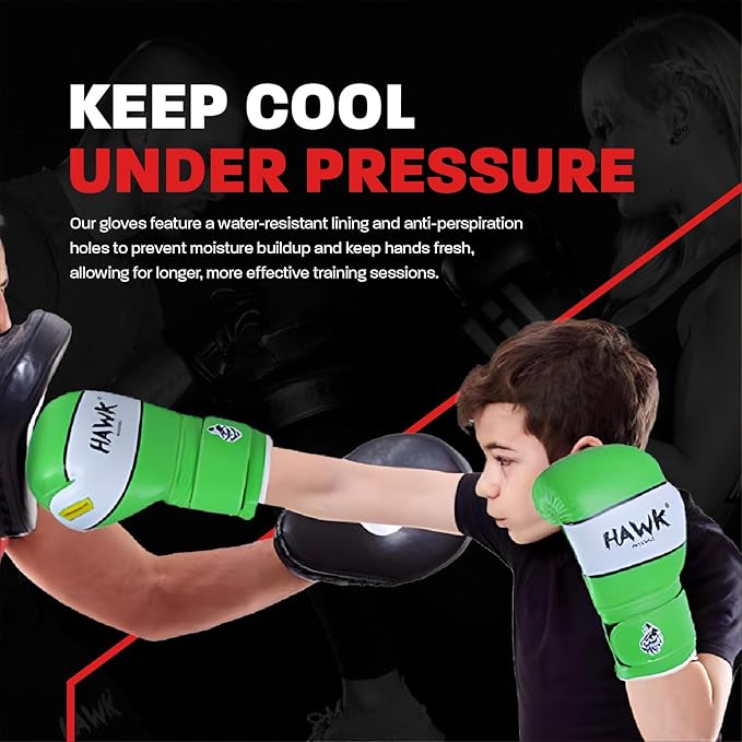 - ✅ ANTI-PERSPIRATION HOLES: These hawk kids boxing training gloves have a breathable pinhole palm that offers increased hygiene efficiency. Top quality bag gloves for kids to reduce offensive odors, moisture through children hands.