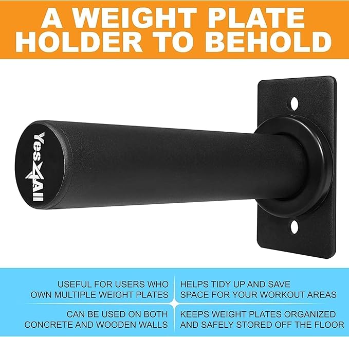 Yes4All Wall Mounted Weight Plate Holder - Fit 2inch Olympic Weight Plates, Protective Rubber Pad