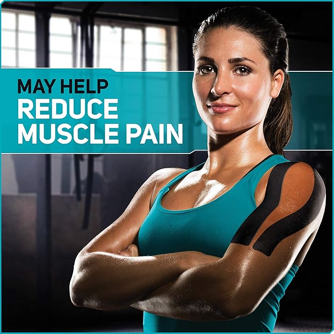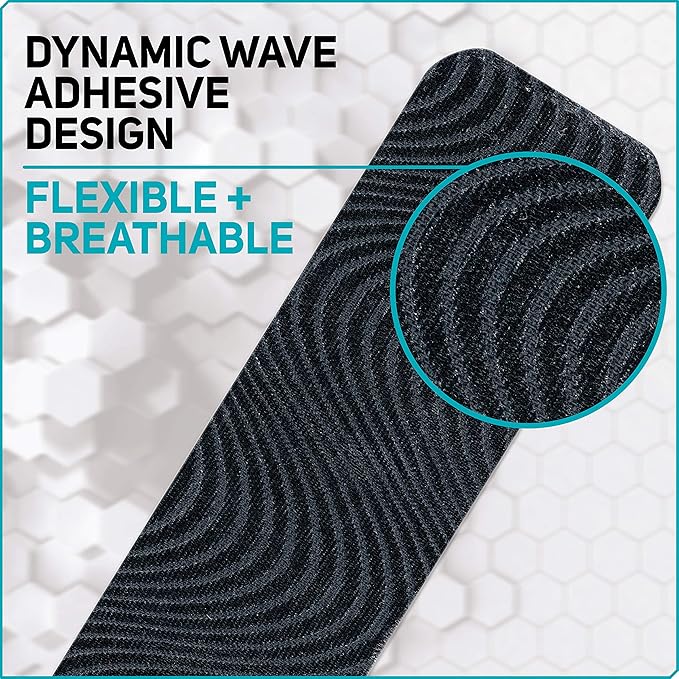 Care Science Waterproof Kinesiology Tape, 40 ct Precut Strips (2 Rolls), Black | Elastic Sports & Weightlifting Tape Supports Muscles & Joints. Water Resistant