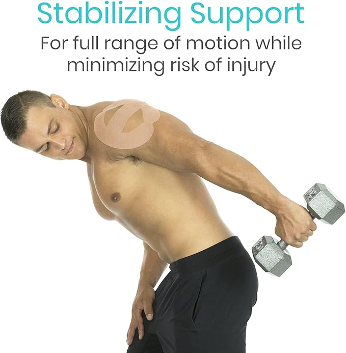 - STABILIZING SUPPORT FOR ANY ACTIVITY: Allowing a full range of motion, the Vive kinesiology tape provides targeted support to sore muscles and weak joints. The sports tape stabilizes joints and muscles to relieve pain and minimize the risk of injury during workouts, sporting events and daily activities. Ideal for running, weight lifting, crossfit and yoga, applying sports tape helps to relieve knee pain, shin splints, plantar fasciitis, shoulder pain, carpal tunnel and more.