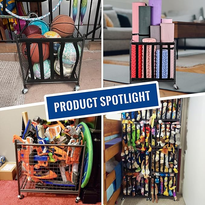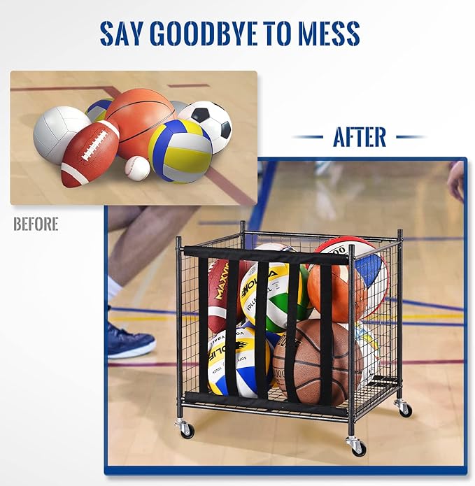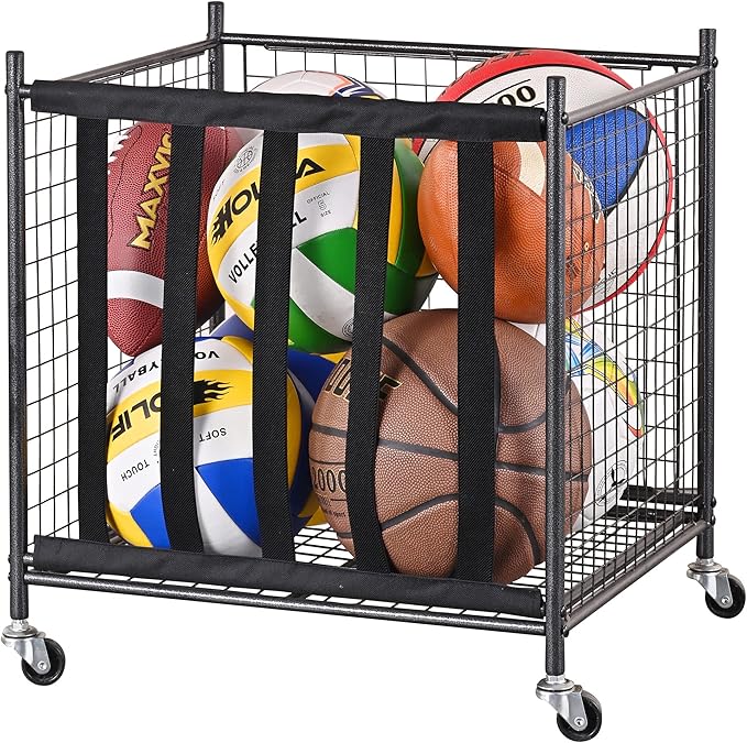 - SMOOTH ROLLING BALL RACK: The rolling sports ball rack features in 4 heavy-duty wheels, indoor & outdoor design, which is easy to move the cage anywhere and fits in a specific position. Great for basketballs, volleyballs, soccer balls and footballs.