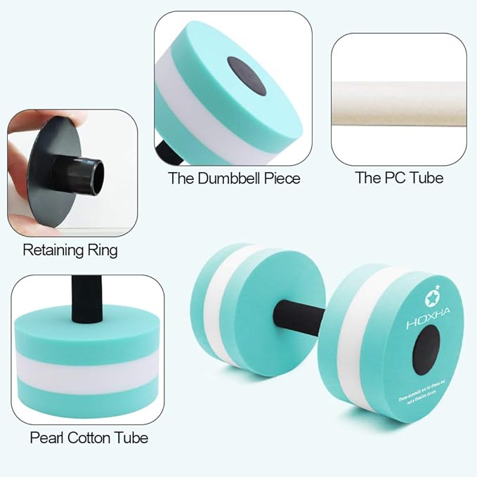 - HIGH QUALITY FOAM & COMFORTABLE GRIP - HOXHA aquatic dumbells are made of high quality EVA material, tasteless and waterproof,the resistance of the barbells will provide an overall workout for your upper body, lower back and other parts.