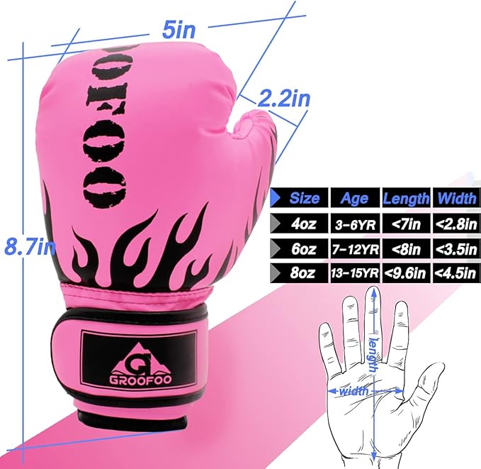 - PROFESSIONAL PROTECTION FOR KIDS: GROOFOO boxing mitts gloves is integrated moulded with thick foamed sponge and mutiple sheets to buffer and absorb punching impact. Wide Velcro strap to snap on with ease and afford support and compression on wrists