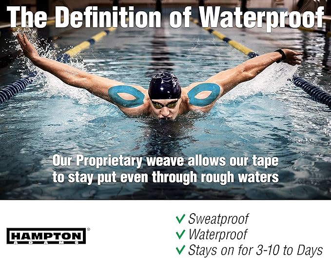 - STAYS ON FOR DAYS – Elastic and resistant to sweat and water, this Kinesiology tape stays put, no matter what.