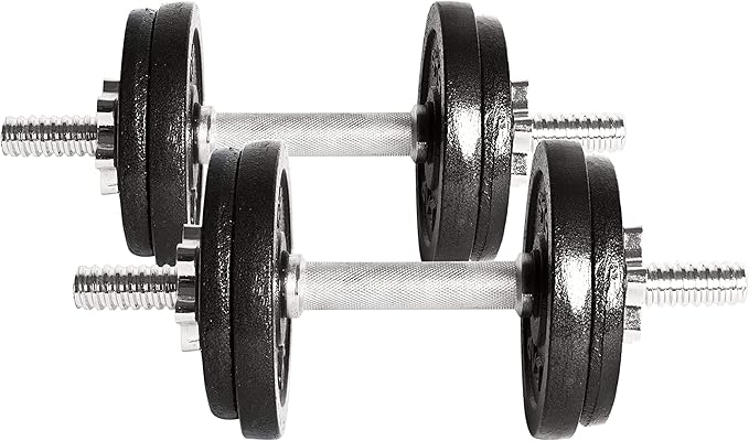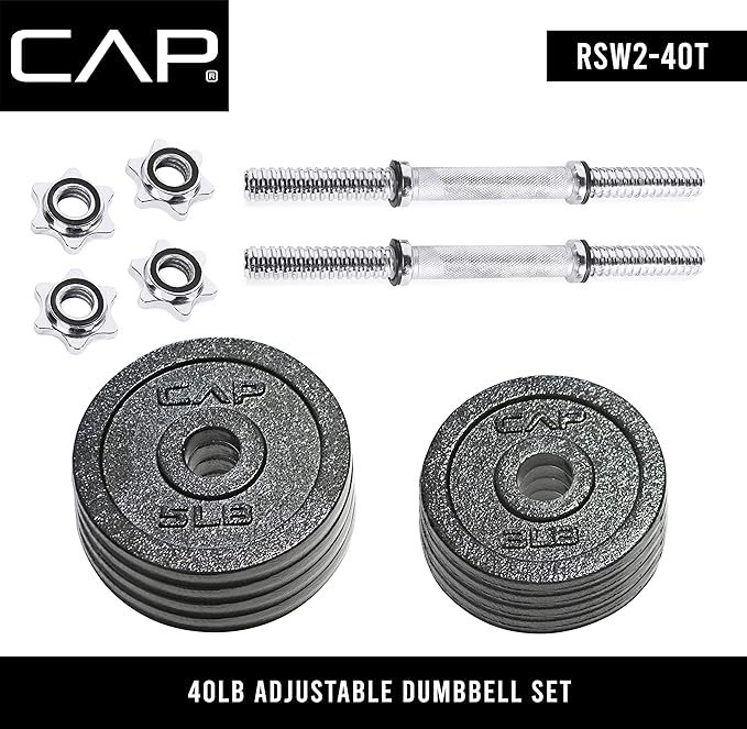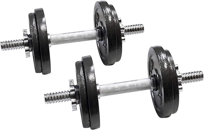 - Weight set includes – 40 lbs. Total: two 14” standard dumbbell handles, four 3-pound plates, four 5-pound plates, and four star lock collars. Great for targeting Individual muscle groups or incorporating into a full body workout.