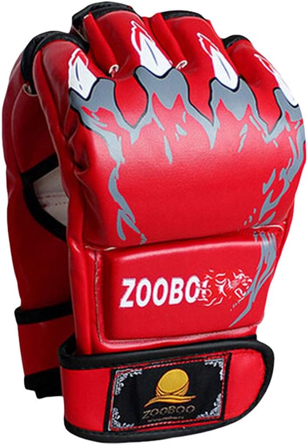 ZooBoo MMA Gloves - Half-Finger Boxing Fight Gloves Punching Gloves Mitts with Adjustable Wrist Band for Sanda Sparring Punching Bag Training (One Size Fits Most)