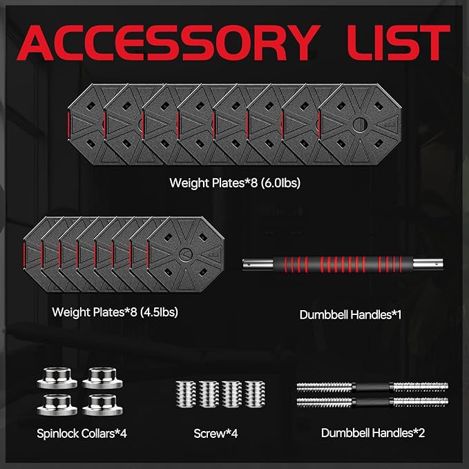 - ✅【3 in 1 DUMBBELL SET】: This adjustable dumbbell set total weights are 88pounds. You can adjust the weight of the dumbbell according to your needs. The dumbbell is equipped with a connecting rod. You can convert it into a barbell in a few seconds, which can meet the exercise needs of upper and lower limbs. Helps to tone and shape the arms, shoulders, back and strengthen your muscles. Multifunctional strength training equipment provides a better training method than any other sports equipment.