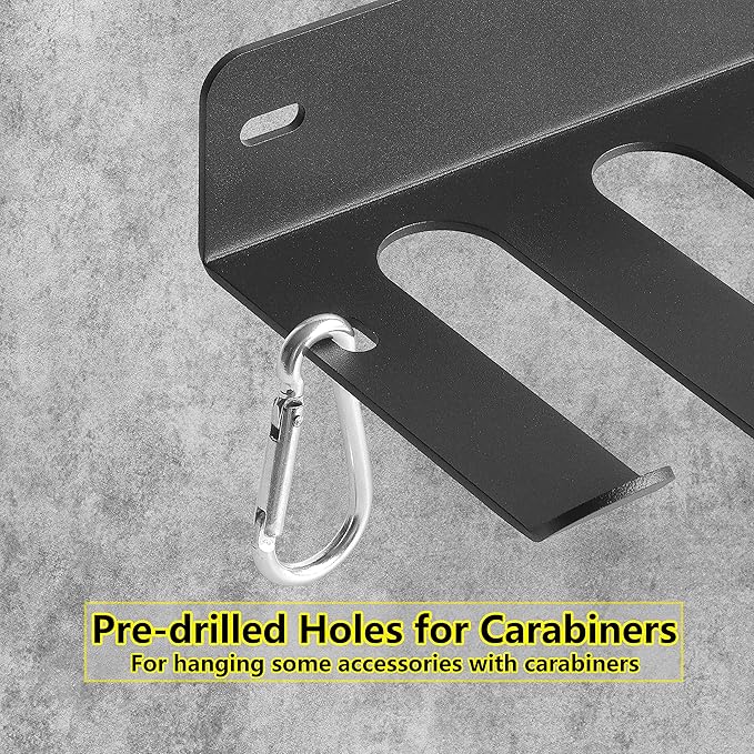 - Practical Design--The total length of the product is 17", and 8 prongs are provided. The upward sloping design of the end of the prongs can effectively prevent the hanging items from falling off. Two new carabiners have been added for hanging items that are inconvenient to place on the prongs