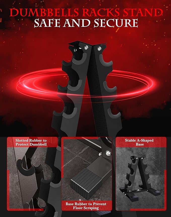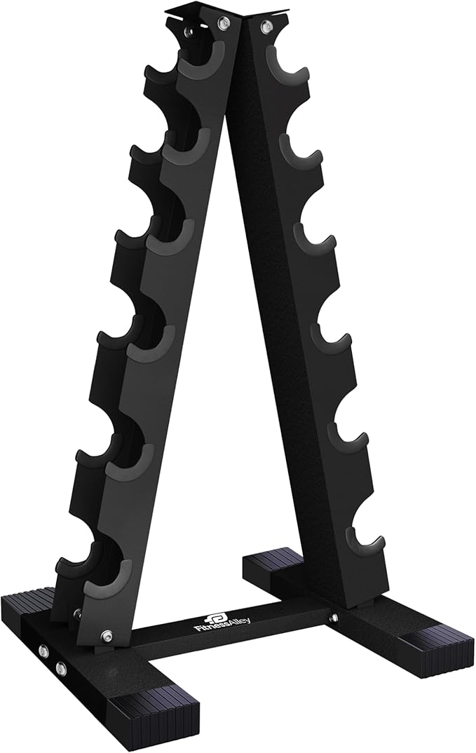 - The A shape dumbbell racks having 2MM thickness in construction, scratch less structure and solid firm design that allows rack to stand still without any slippage from foot