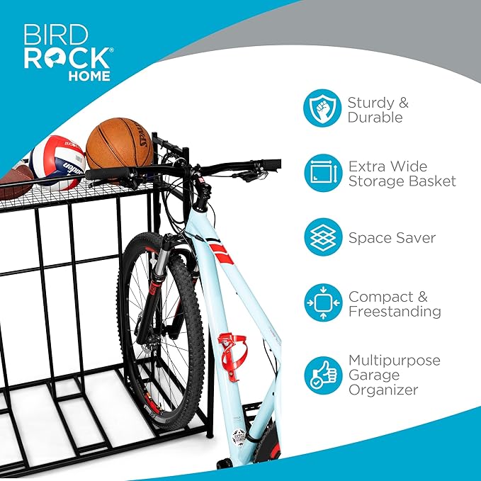 - MULTI-PURPOSE ORGANIZER: Features extra-wide top basket for sports gear and adjustable hooks for helmets, rackets, and more, keeping your garage neat and tidy.