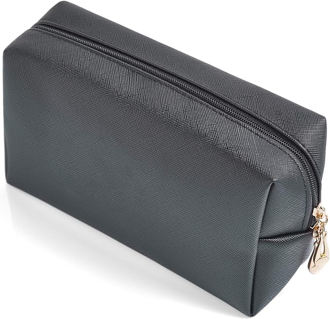 PU Leather Cosmetic Bag for Women Minimalism Makeup Bag for Daily Use Portable Storage Purse Small Neat Cosmetic Pouch Water-resistant Toiletry Bag for Travel(Black)