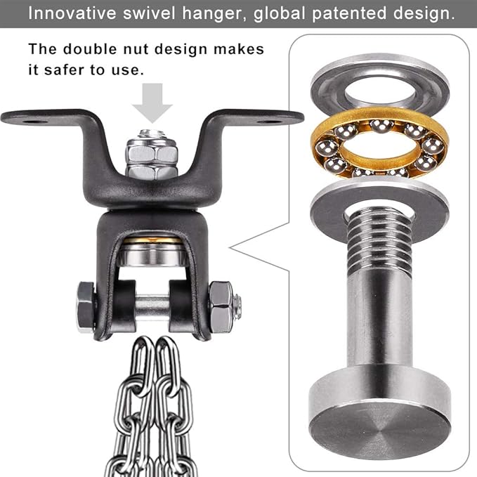 - 🥊USE: The heavy bag hanger with chain perfect for boxing, MMA, Muay Thai or any of your favorite contact sports heavy bag training up to 800LBS. Strong chain for your most intense cardio and strength building training sessions.
