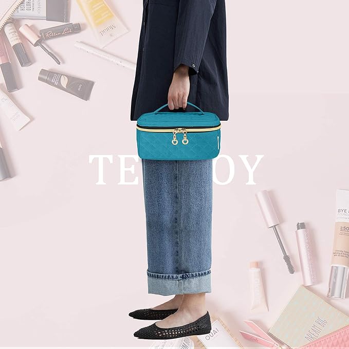 Teamoy Travel Makeup Brush Case, Professional Cosmetic Artist Organizer Case with Handle for Makeup Brushes(up to 7-inch) and Essentials, Small, Teal(BAG ONLY)