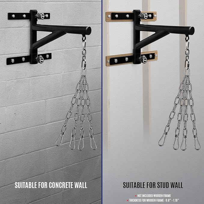 - SUITABLE FOR CONCRETE AND STUD WALLS: Wall Mount Punching Bag Hanger is suitable for concrete walls or can be installed with a wooden frame for stud walls