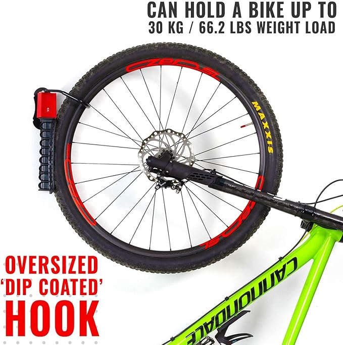 - Durable and Safe: The high-quality steel construction of this bike wall mount offers reliable strength, supporting up to 30 kg or 66.2 lbs. Protects bike components and extends their lifespan