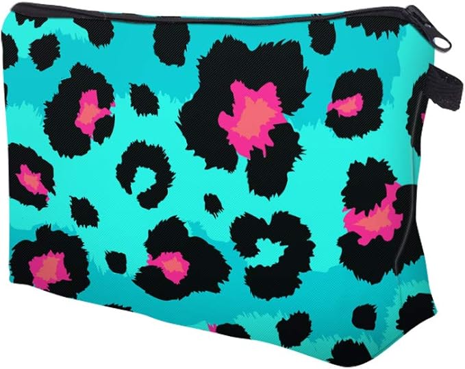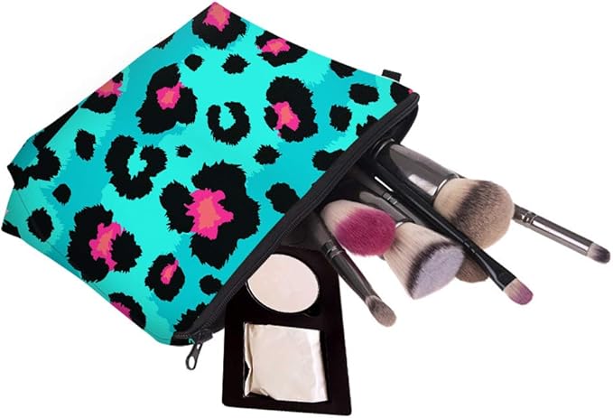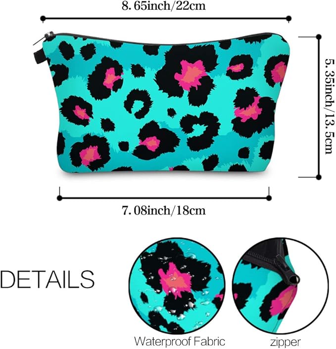Cute Travel Makeup Bag Cosmetic Bag Small Pouch Gift for Women (Big Leopard Jade Green)