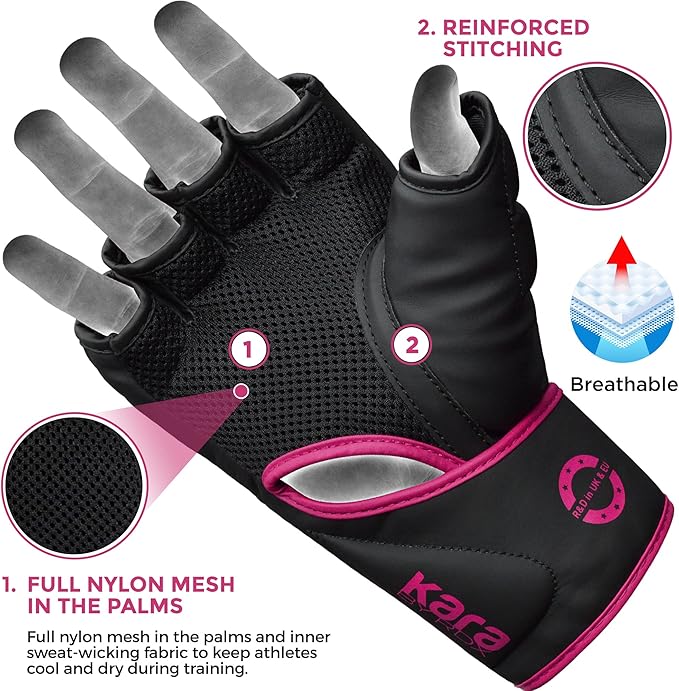- EXPERIENCE A FIT LIKE NO OTHER – Let's get personal! Our grappling gloves feature a half-finger design for a perfect and adjustable fit. The pre-curved design, complemented by the breathability of the nylon ventilation panel and sweat-wicking inner fabric, guarantees your hands stay dry and comfortable. It's like they were made just for your hands.
