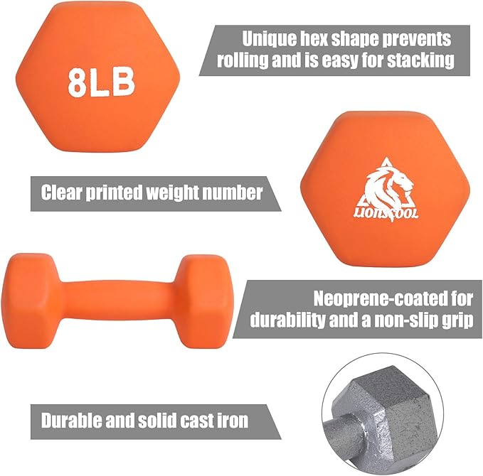 - Versatile and Convenient: LIONSCOOL neoprene coated dumbbell is excellent for full body workout or targeting specific muscle groups. Compact and ideal to be used pretty much anywhere:the gym, home and even outdoors.